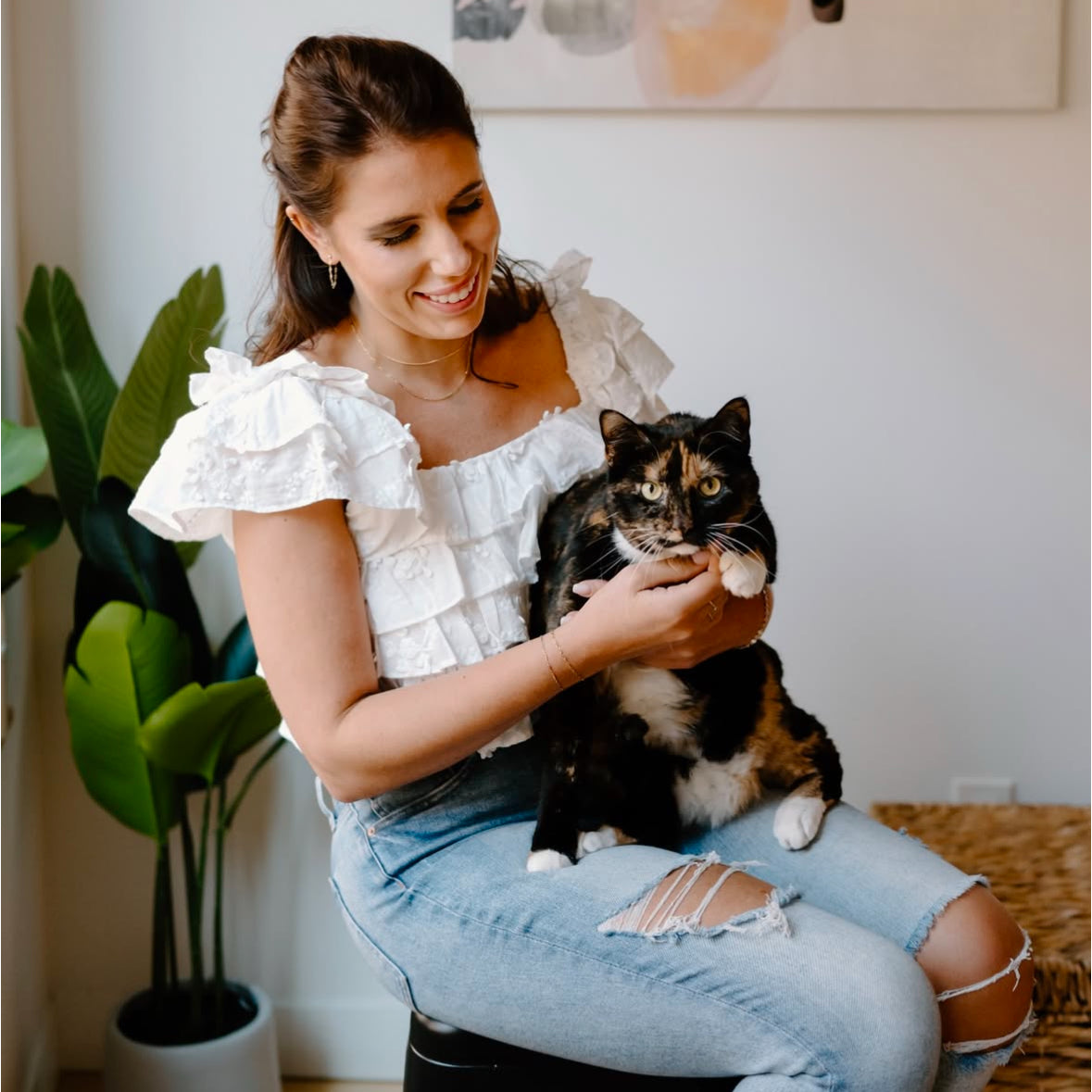 Frannie, the fearless rescue cat, is a snuggle enthusiast with impeccable timing. Despite her petite size, she holds her own against her 80-pound big sister, Sadie, with the confidence of a cat who knows she's the boss. When it comes to affection, Frannie doesn’t wait for an invitation—she's always ready for a cuddle, preferably while trying to do something important!