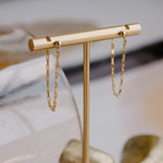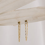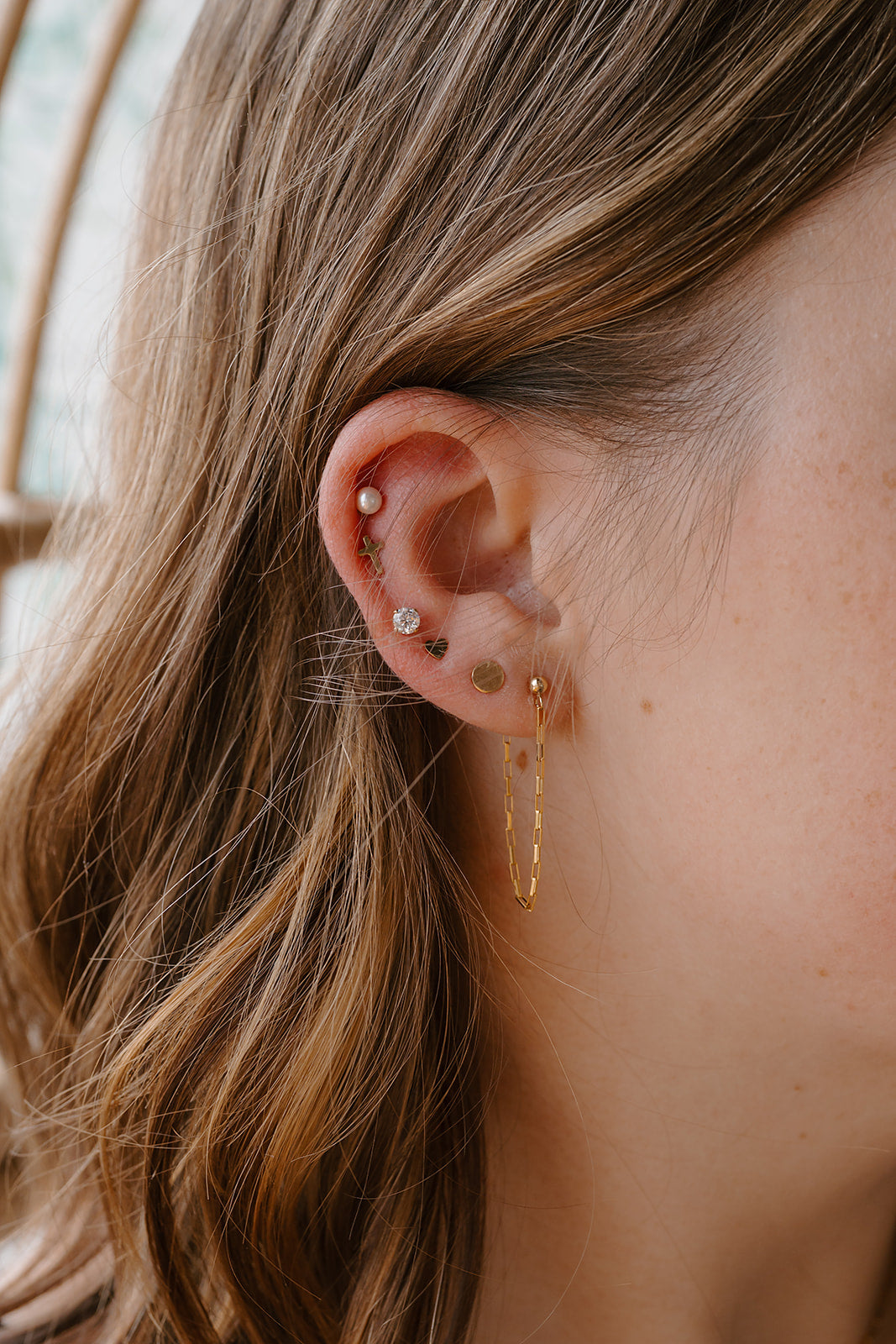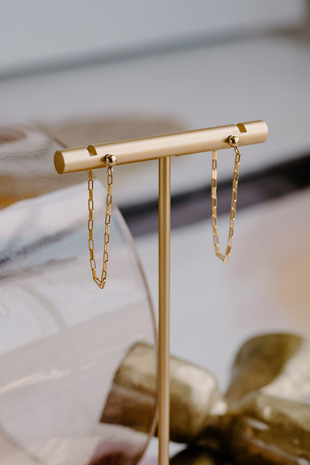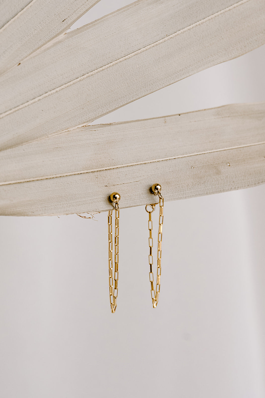 Minimal design, maximum style points. The Arden Box Chain Earrings feature a drop of 14k gold filled rectangular links for a clean, modern finish. Lightweight and easy to wear, they’re the perfect way to bring a little chain energy to your earring game — solo or paired with your favorite hoops.
