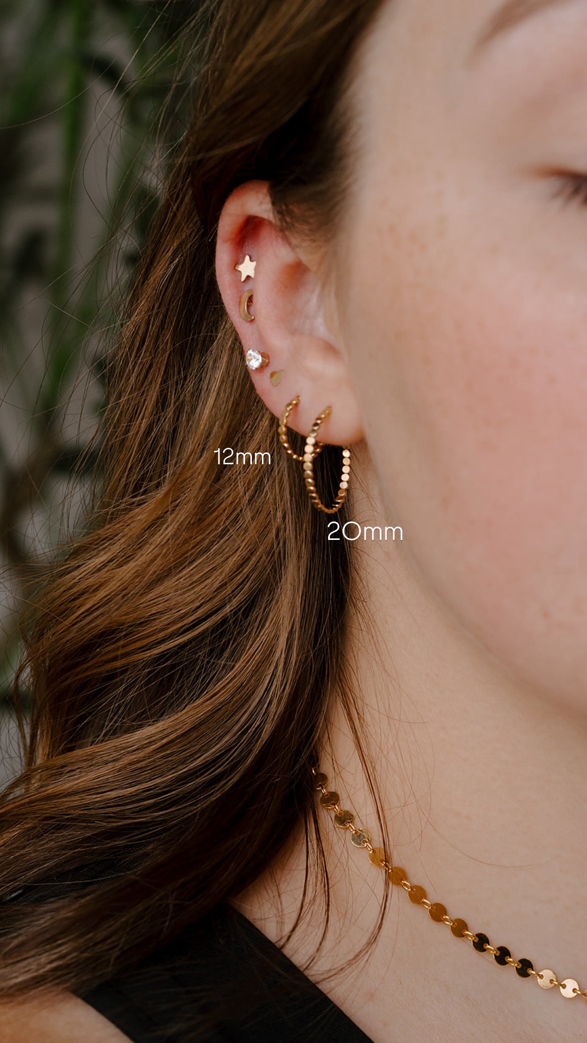 12mm Huggie – Everyday Mini: Small but mighty. A subtle pop with just the right amount of shine for daily wear.