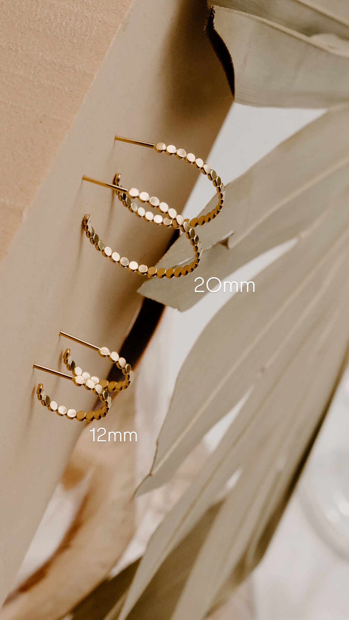 Light-catching texture, everyday ease. The Celine Hoops are designed with reflective disc details for a bold yet minimal look you’ll keep in rotation.