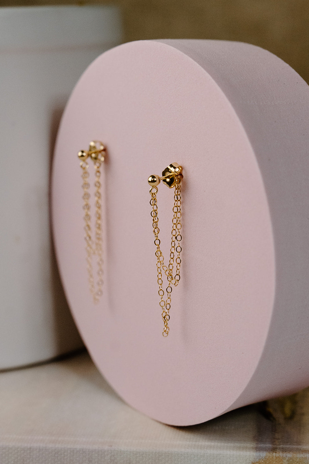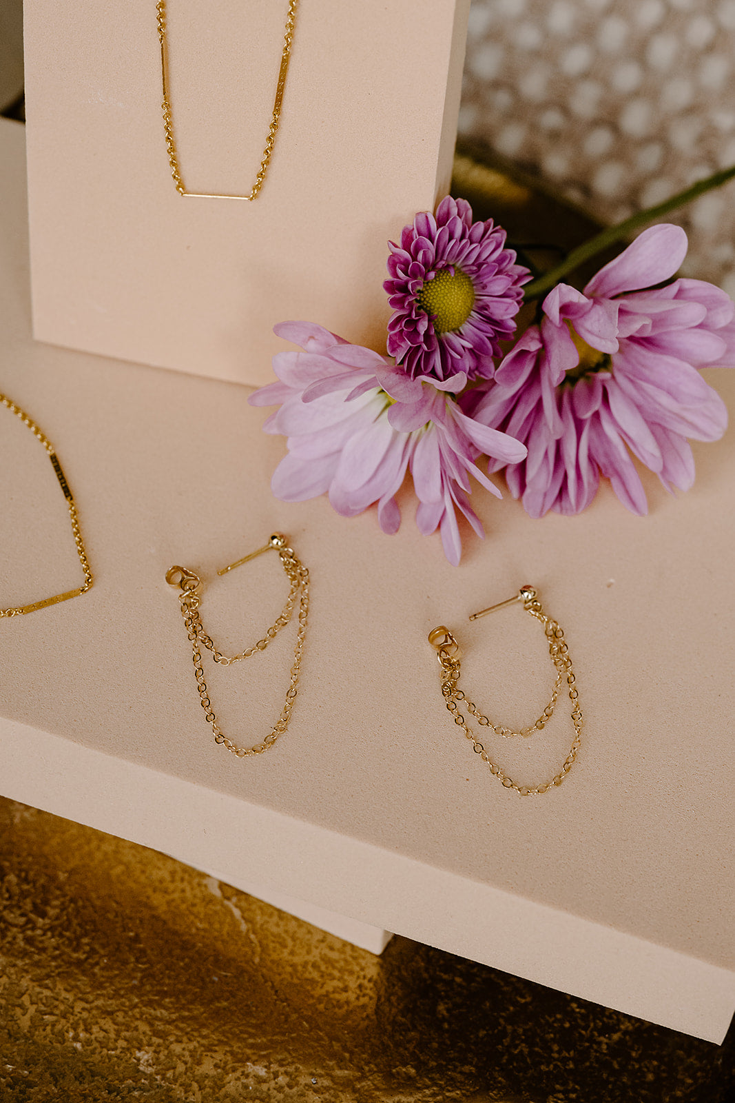 When one drop just isn’t enough. The Double Loop Chain Earrings bring twice the movement, twice the shine, and twice the compliments. Two delicate chain loops drape from each stud, giving you that effortless layered look without the fuss. They catch the light with every turn of your head, adding just the right amount of drama to coffee runs, date nights, and everything in between.