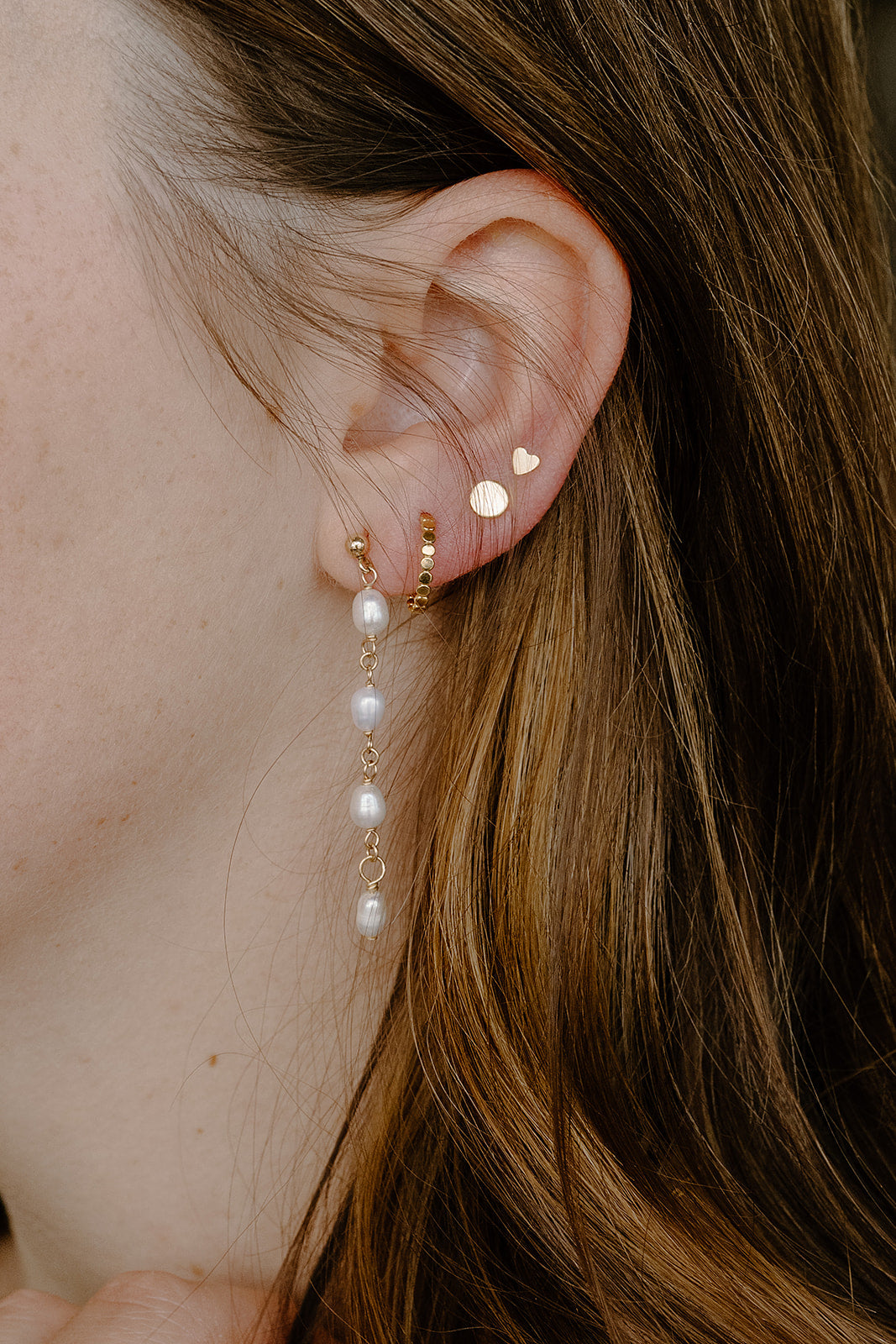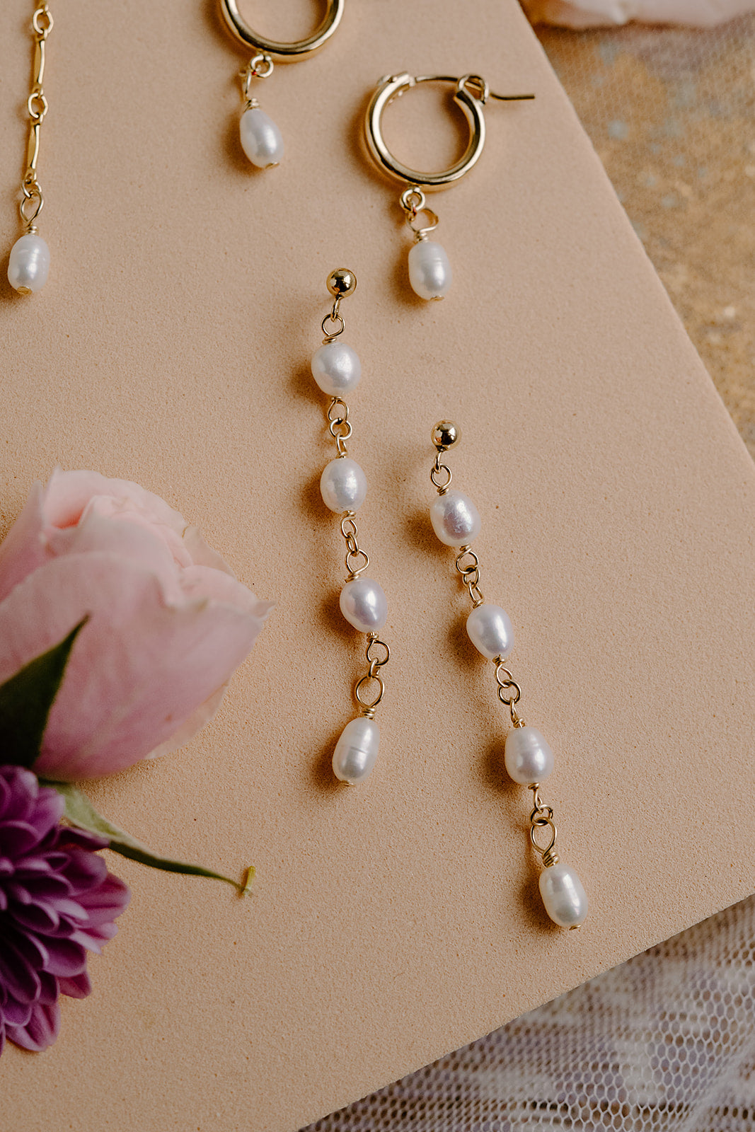 A little drama, done the right way. The Eden Pearl Quad Earrings feature a cascading strand of hand-selected freshwater pearls that catch the light with every move. The silhouette is elegant and elongated — making these the earrings you choose when you want your look to feel thoughtful, polished, and just a bit elevated.
