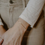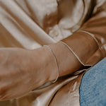 Available in both 14k gold-filled and sterling silver, this minimalist gold or silver bracelet is lightweight, stackable, and designed to flex with your style—whether you’re heading to work, happy hour, or just trying to look like you have your life together.