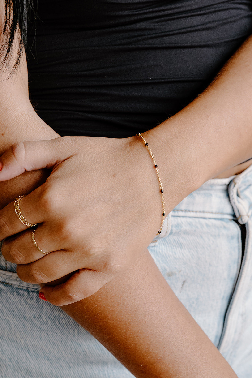 The Ellie Black Enamel Chain Bracelet brings instant cool to your wrist stack. Glossy black enamel paired with 14k gold filled or sterling silver links makes it sharp, versatile, and anything but basic. Handmade to order and part of our mission to give back to animals, this bracelet proves style and substance go hand in hand.