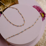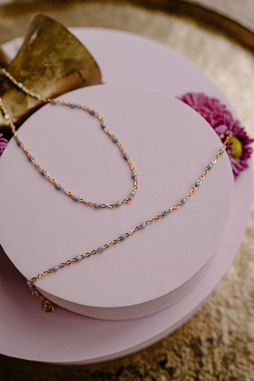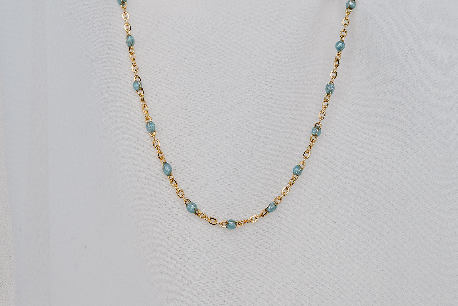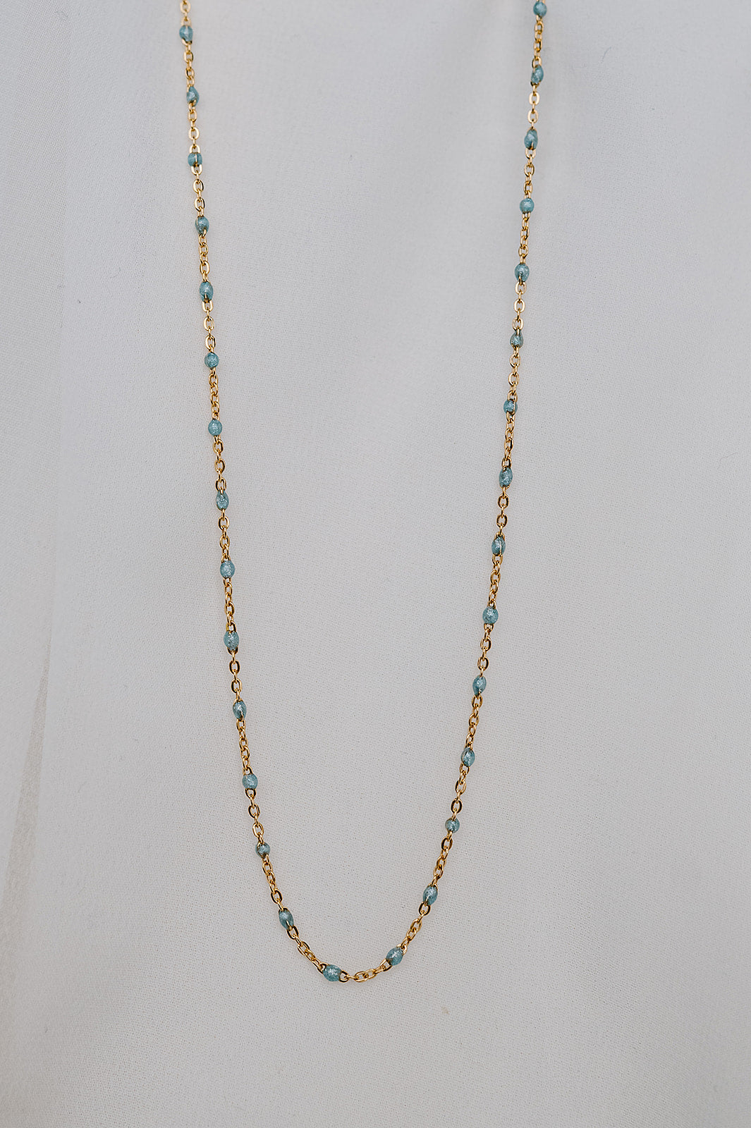 The Ellie Cinderella Blue Enamel Chain Necklace is giving modern fairytale energy. Soft blue enamel beads with a hint of sparkle meet 14k gold filled or sterling silver links for a chain that feels dreamy but not over the top. Made to order with a little bit of magic (and yes, your purchase helps us give back to animals too) — this necklace proves happily ever after can look really, really chic.