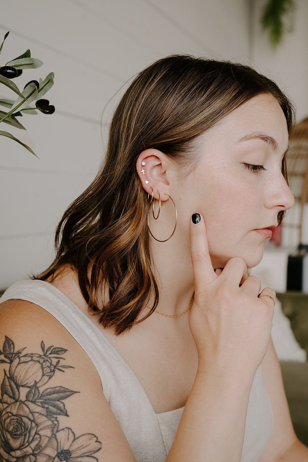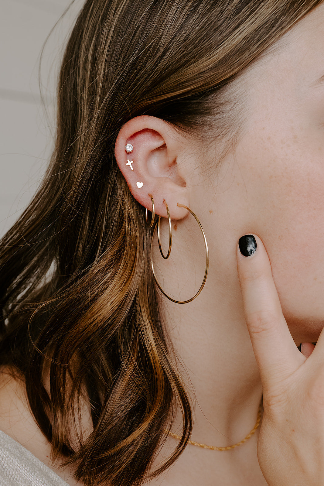 Your new go-to hoops—lightweight, tarnish-resistant, and made to move with you. The Endless Everyday Earringsfeature a sleek, clasp-free design that slides in easily and stays put. No backs, no poking, no drama—just effortless shine in your choice of 14k gold filled or sterling silver.