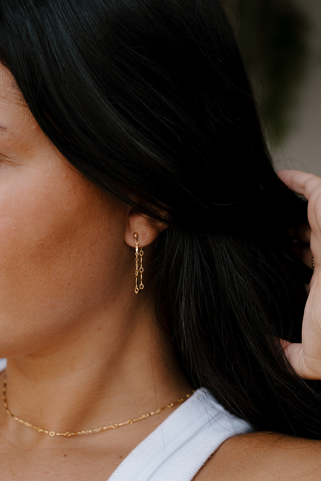 Hangs at the top of the chest. Ideal for a relaxed, elegant look or making a subtle statement with a pendant or layered chains.