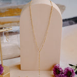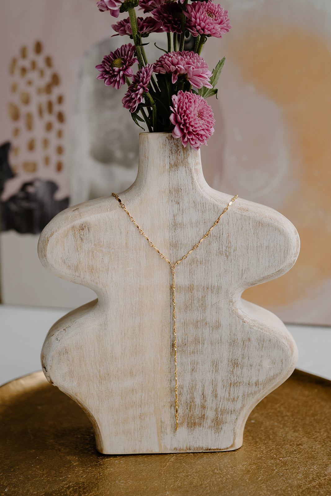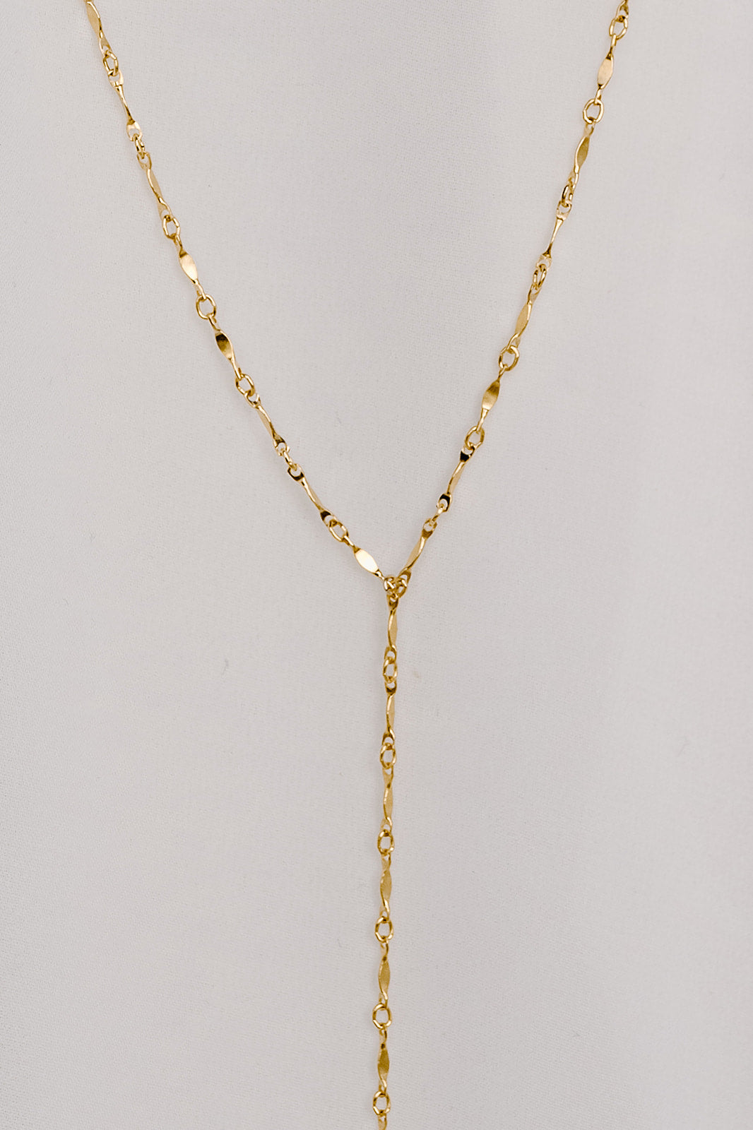 The chain you already love — now with a little extra drama. The Esme Sculpted Bar Chain Lariat Necklace takes our textured, light-catching links and gives them a sleek drop that moves with you. The sculpted bars catch the light from every angle, while the lariat style adds that “I didn’t try, but it worked” kind of energy. Wear it layered to stir up your stack or solo when you’re in the mood for something simple but not boring.