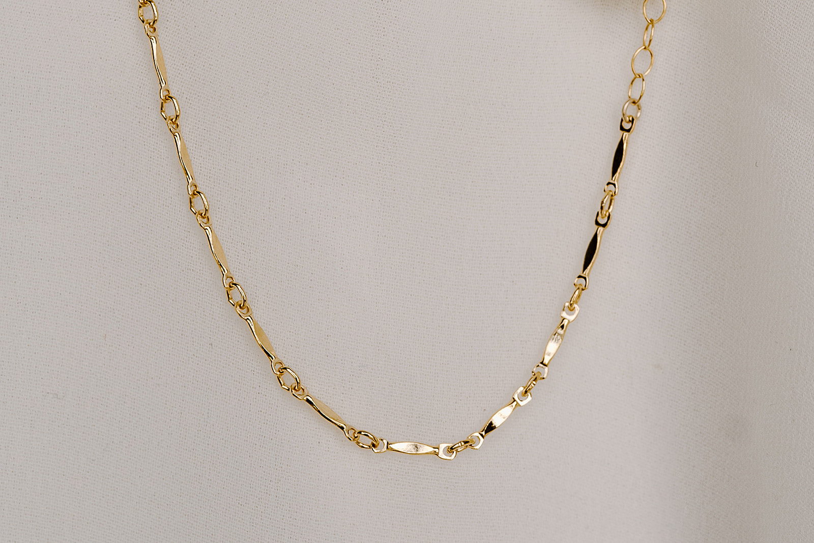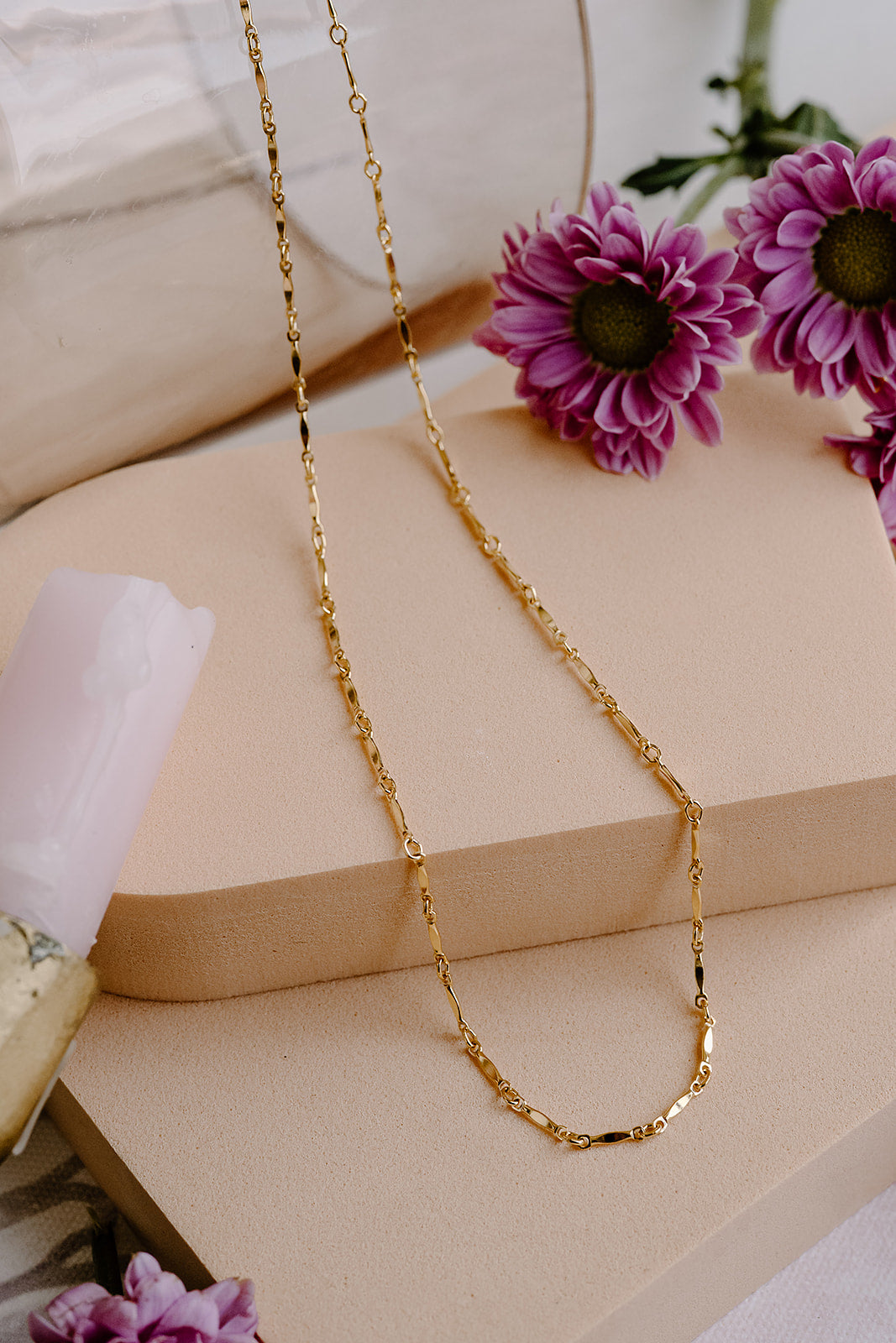 This chain’s got curves—in the best way. The Esme Sculpted Bar Chain Necklace brings just the right amount of shine with softly shaped links that catch the light like they know what they’re doing.