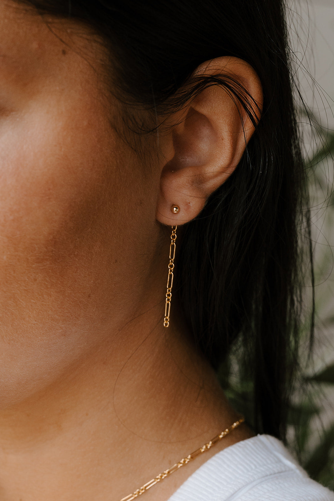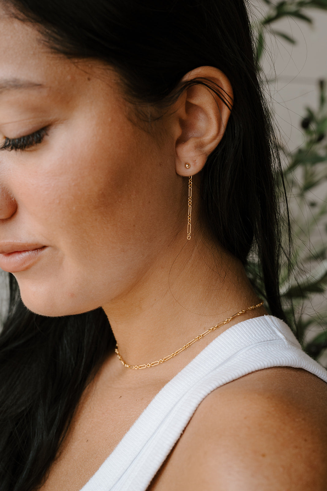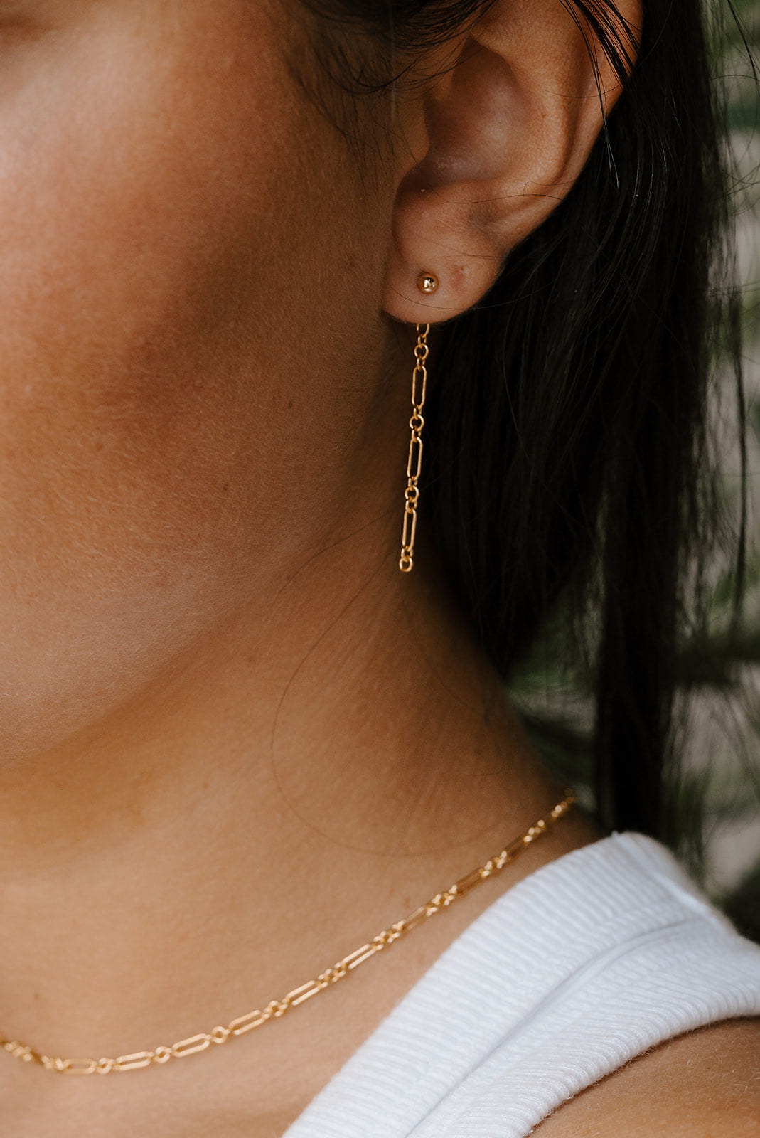 Hoops are great, but sometimes you need a little more drama. The Everly Lux Paperclip Chain Earrings take the sleek, high-shine links of our best-selling Everly Lux Chain and turn them into shoulder-grazing drops that move when you do. Crafted in 14k gold filled, they’re lightweight, minimal, and just bold enough to make people ask where you got them. Pair with the matching necklace or bracelet for a look that says “I actually thought this through” — even if you didn’t.