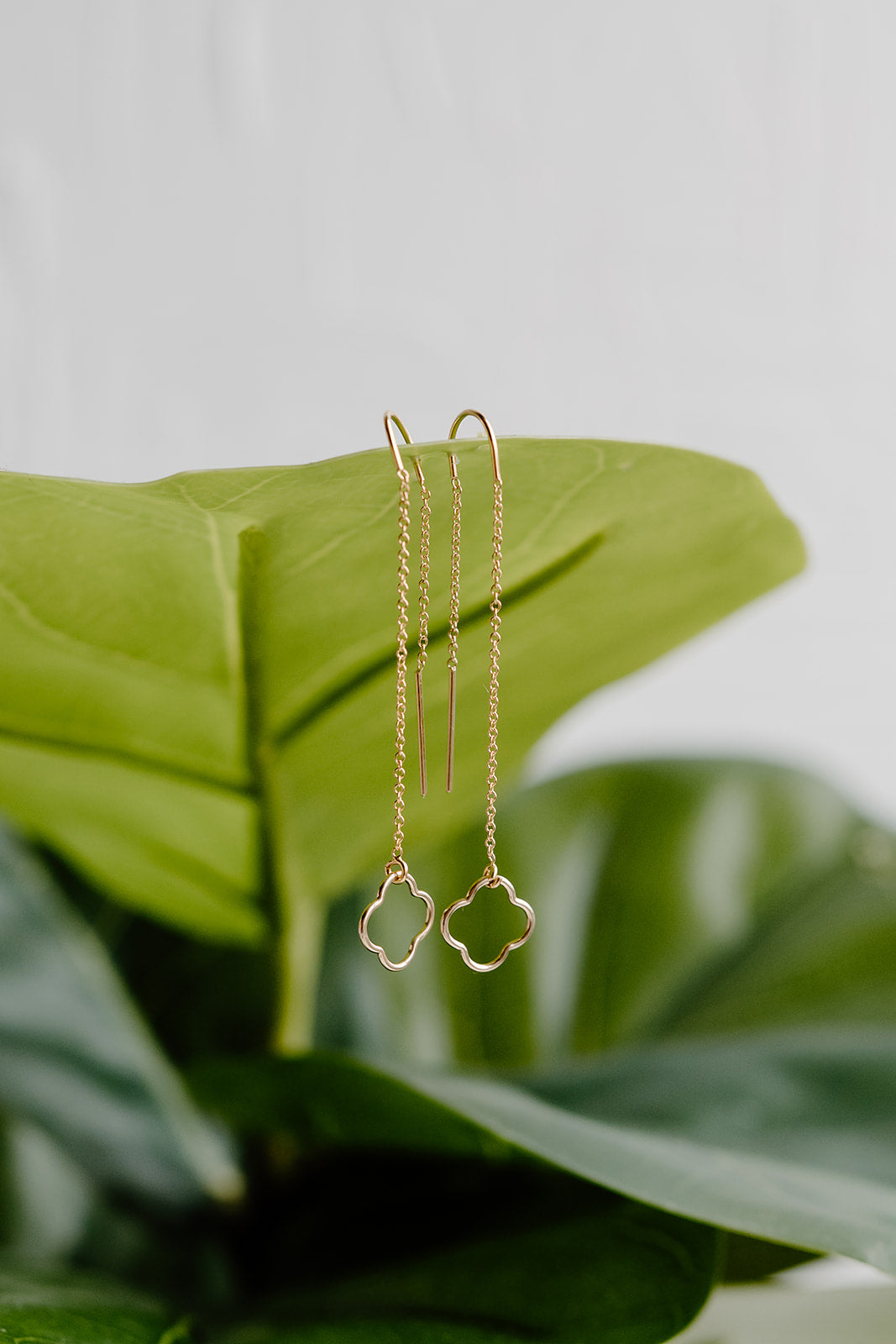 The Fleur Threader Earrings add a graceful hint of luxury with their sleek thread-through design and subtle floral silhouette. Crafted in 14k gold filled or sterling silver, they move beautifully with every turn and feel airy and comfortable all day. They elevate even the simplest outfit and pair seamlessly with the Fleur Necklace for a polished, feminine look that never tries too hard.