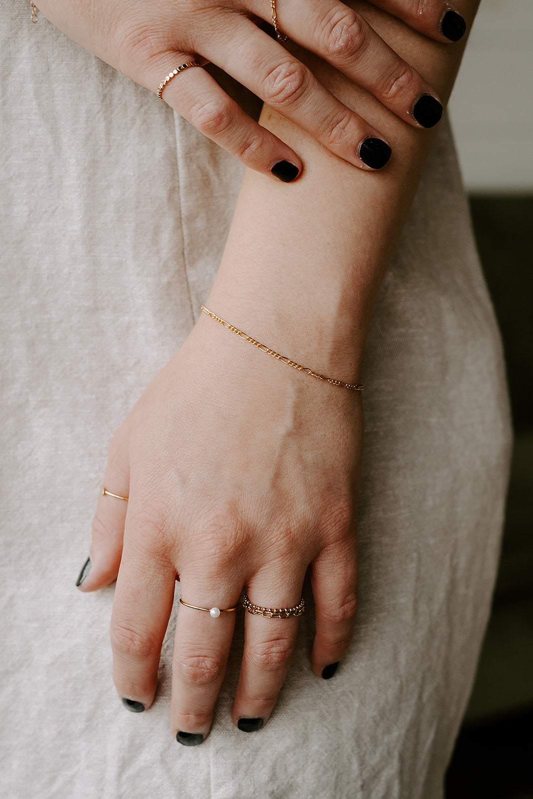 The Gia Figaro Bracelet is where timeless meets effortless. Inspired by the traditional Figaro link, it adds easy shine and a touch of vintage attitude to any stack.