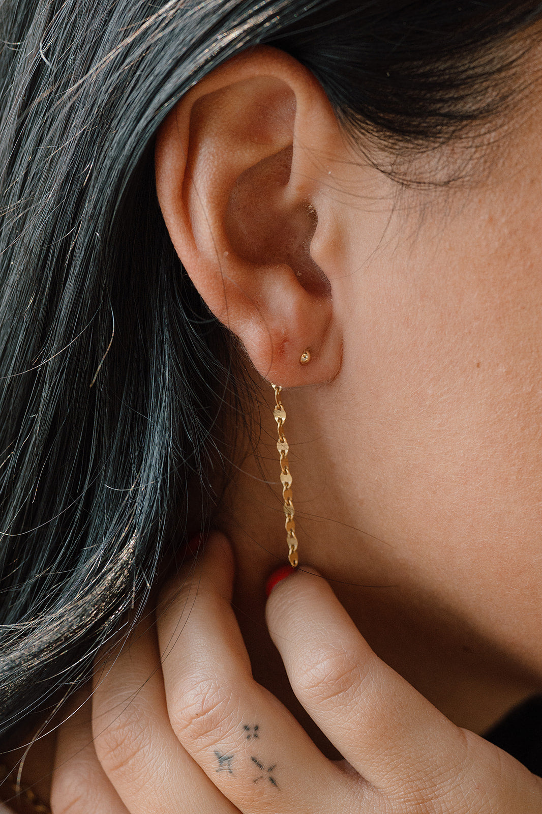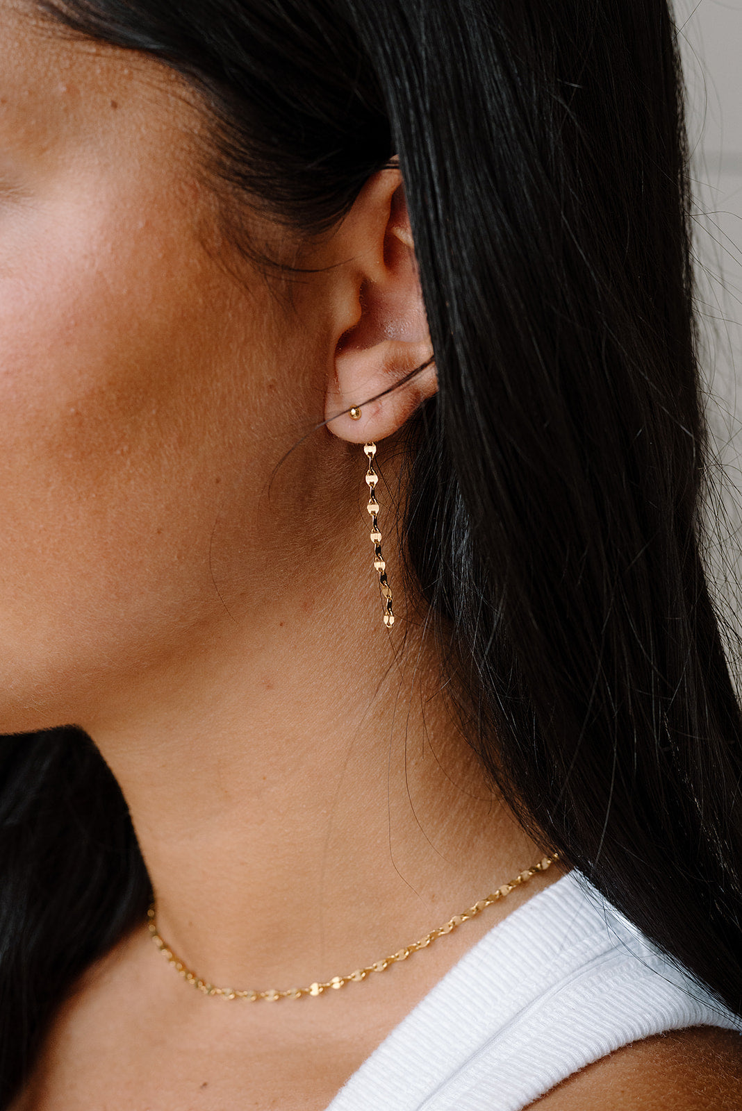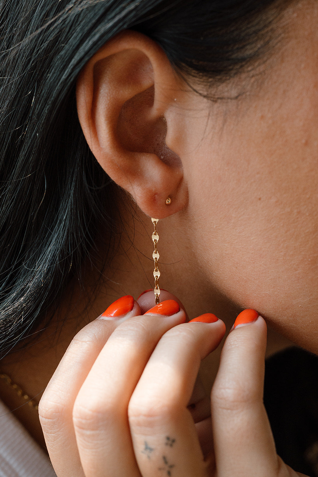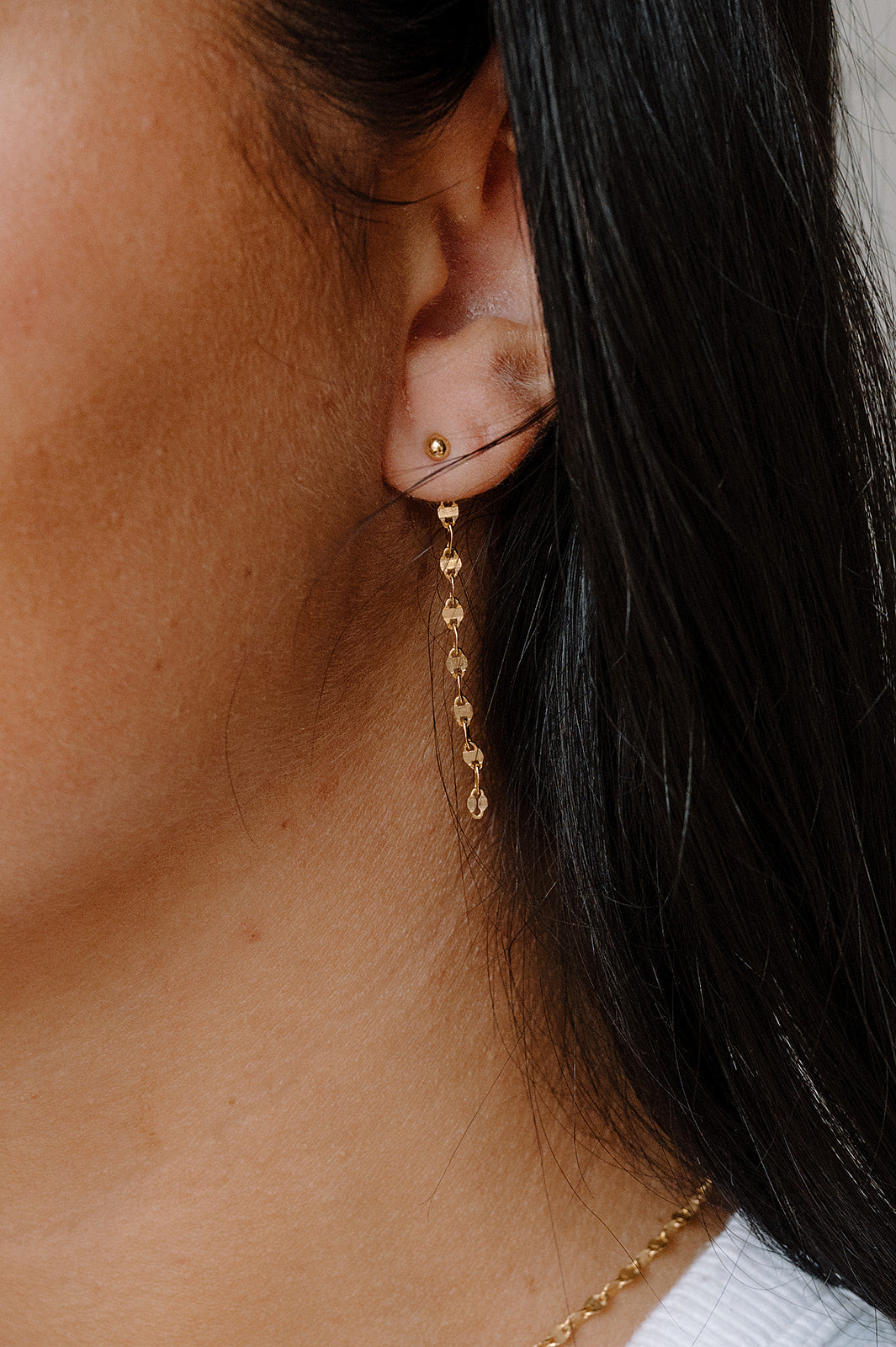 The Lumi Double Mirror Backdrop Earrings move with you and catch the light with every turn of your head. Crafted in 14k gold filled or sterling silver, they feel weightless, easy to wear, and add a soft understated glam that feels cool without trying. They are the pair you reach for when you want simple with a hint of flirty.