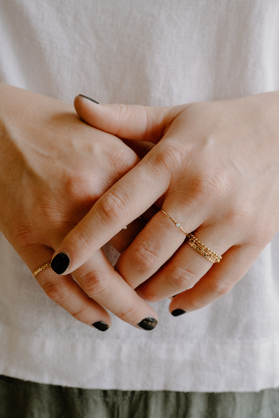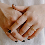 Tiny opal, big glow. The Novae Opal Stacking Ring brings an iridescent pop with a micro stone that shifts in the light—minimalist, moody, and made to stack.
