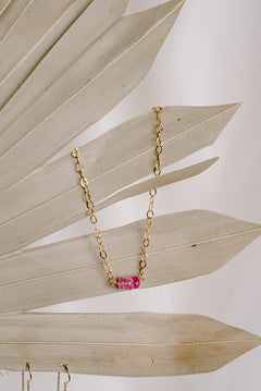 Meet your new wear-everywhere statement. The Opaline Rainbow Moonstone Necklace features radiant pink rainbow moonstones strung along a 14k gold filled mirror-cut chain that glimmers with every move. The blend of shimmer and iridescence makes it a standout on its own or layered with your everyday chains. It’s the kind of piece that turns “where’d you get that?” into a regular question.