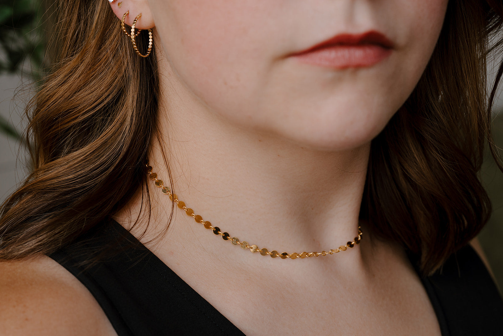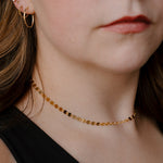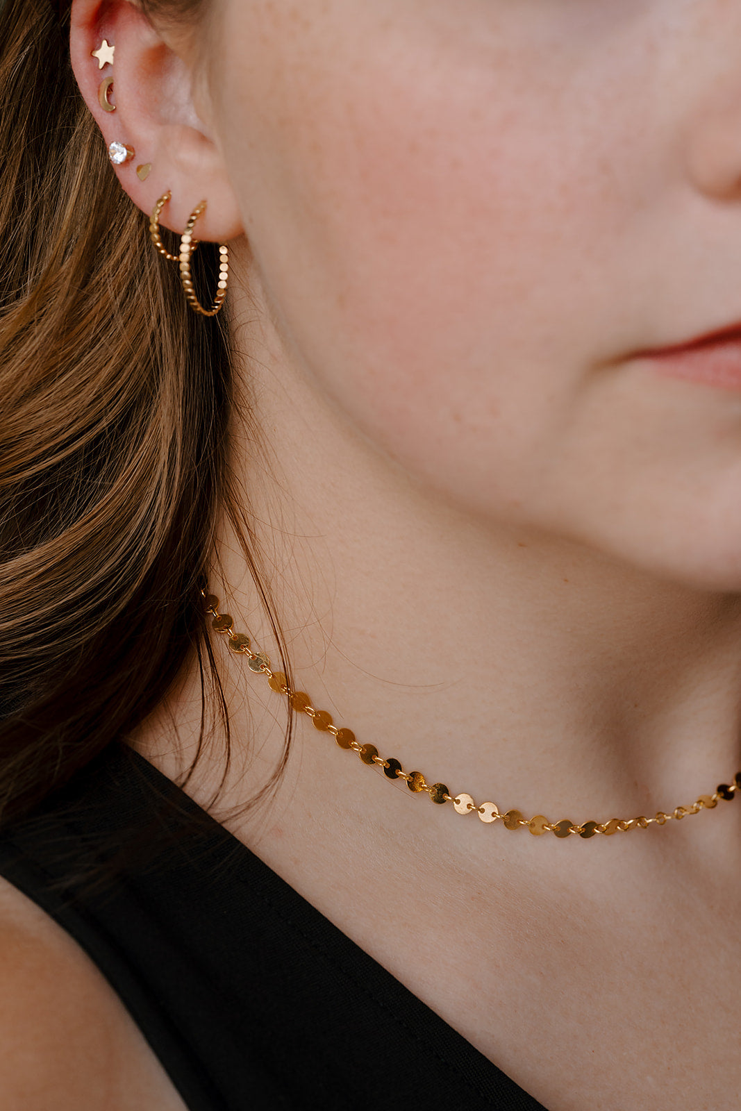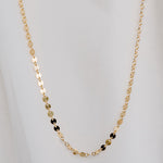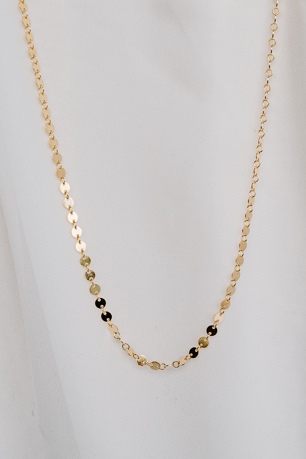 A little shimmer never hurt anybody. The Celine Chain Necklace is built to catch the light — and maybe a few compliments. Featuring delicate flat discs linked together in your choice of gold-filled, rose gold-filled, or sterling silver, it’s lightweight enough for everyday, but bold enough to stand out. Layer it up or let it fly solo — either way, this chain knows how to shine