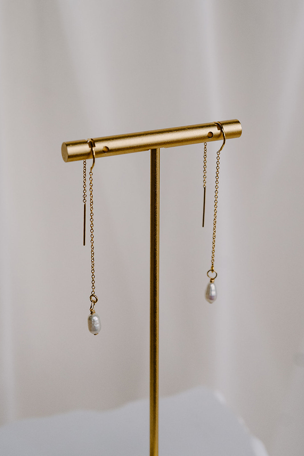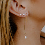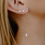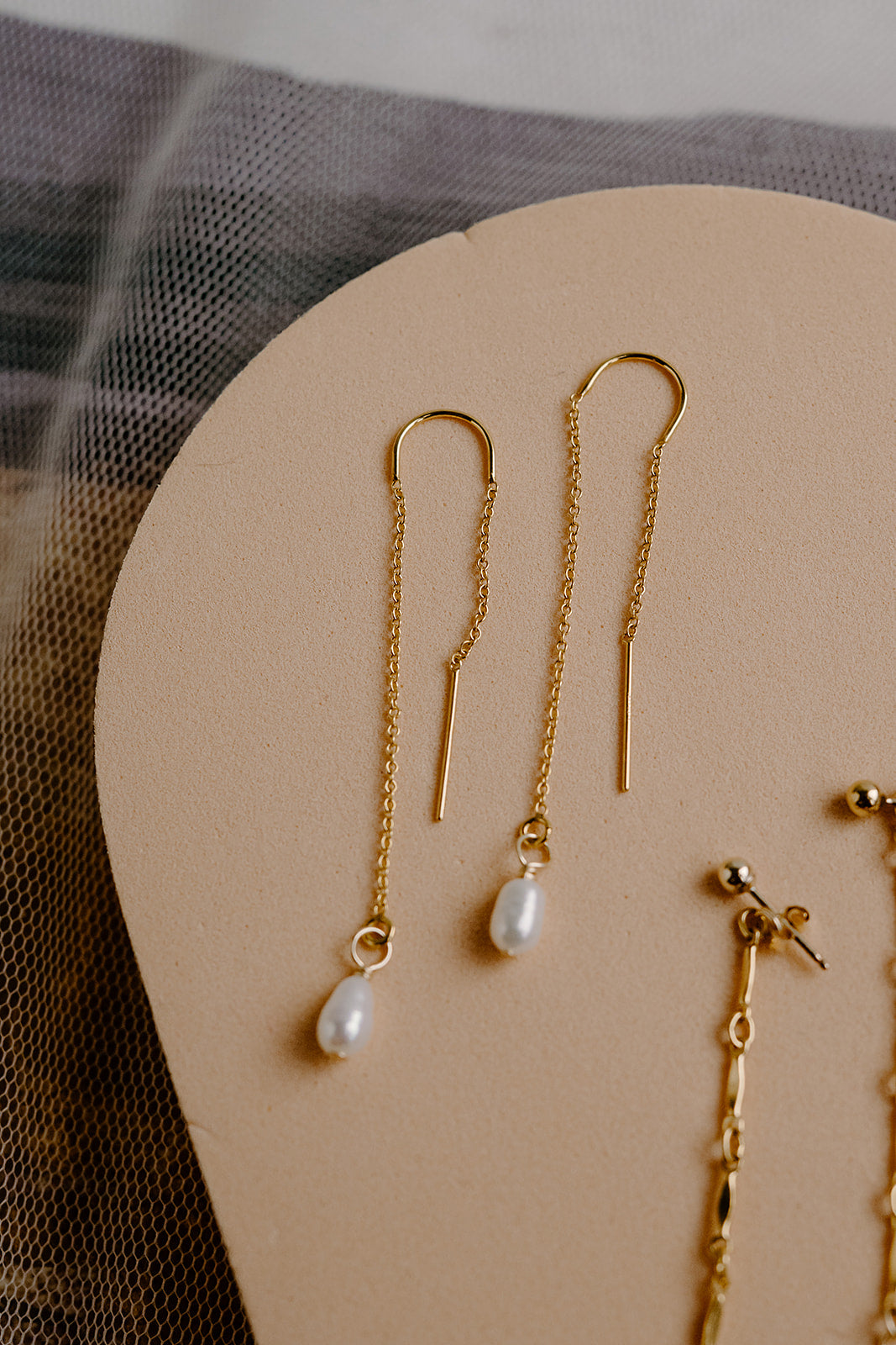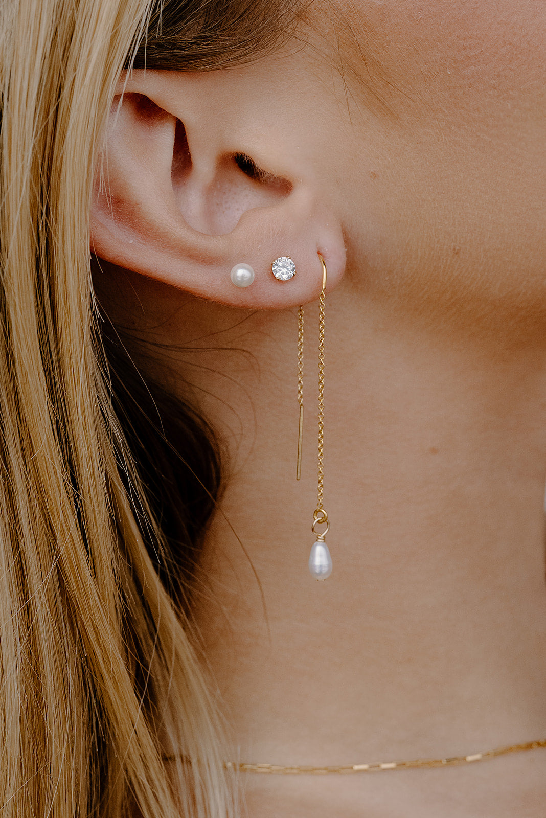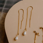 Proof that pearls can still turn heads. The Eden Pearl Threader Earrings bring a fresh twist to a classic — with a single freshwater pearl gliding on a 14k gold-filled chain that moves with you.