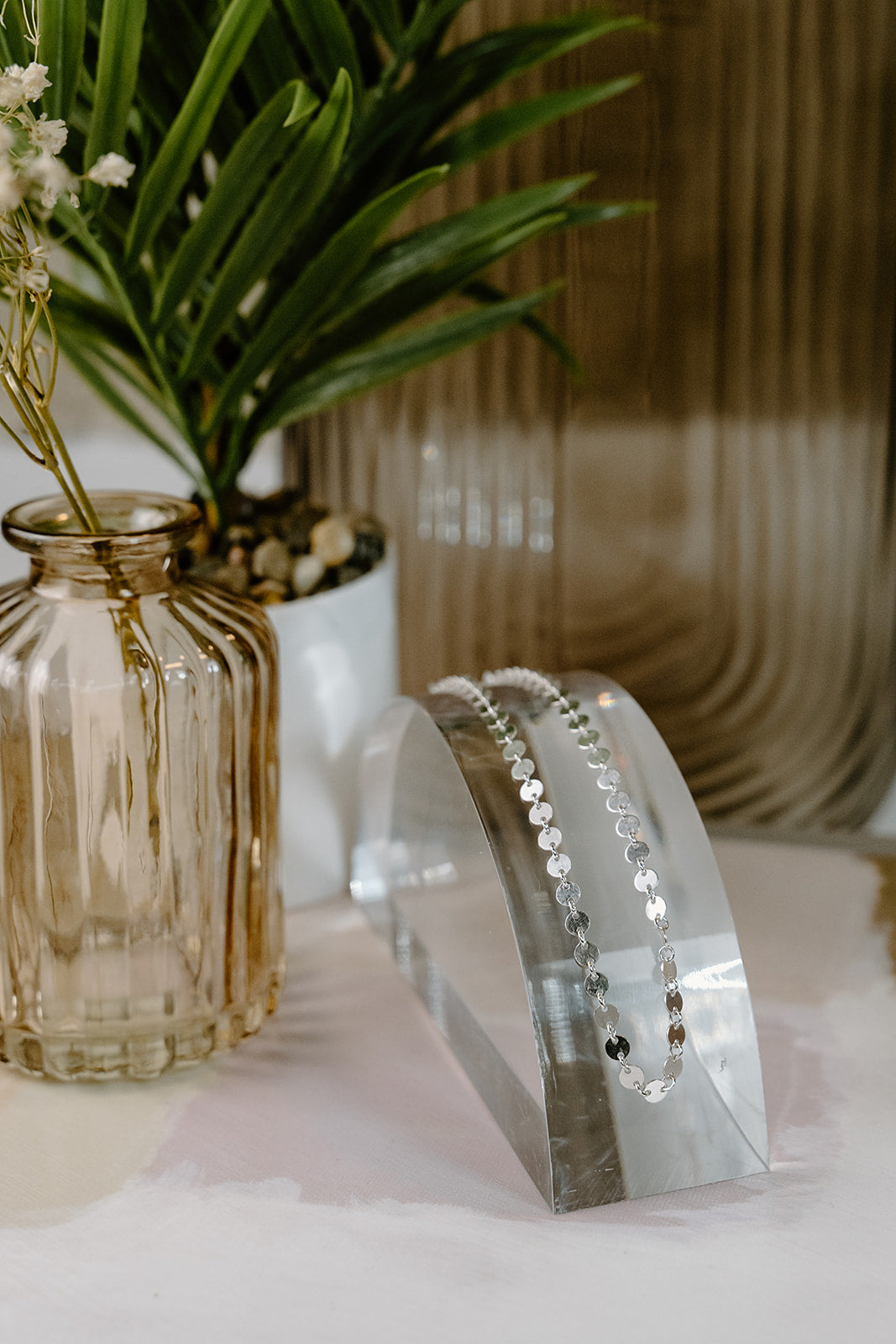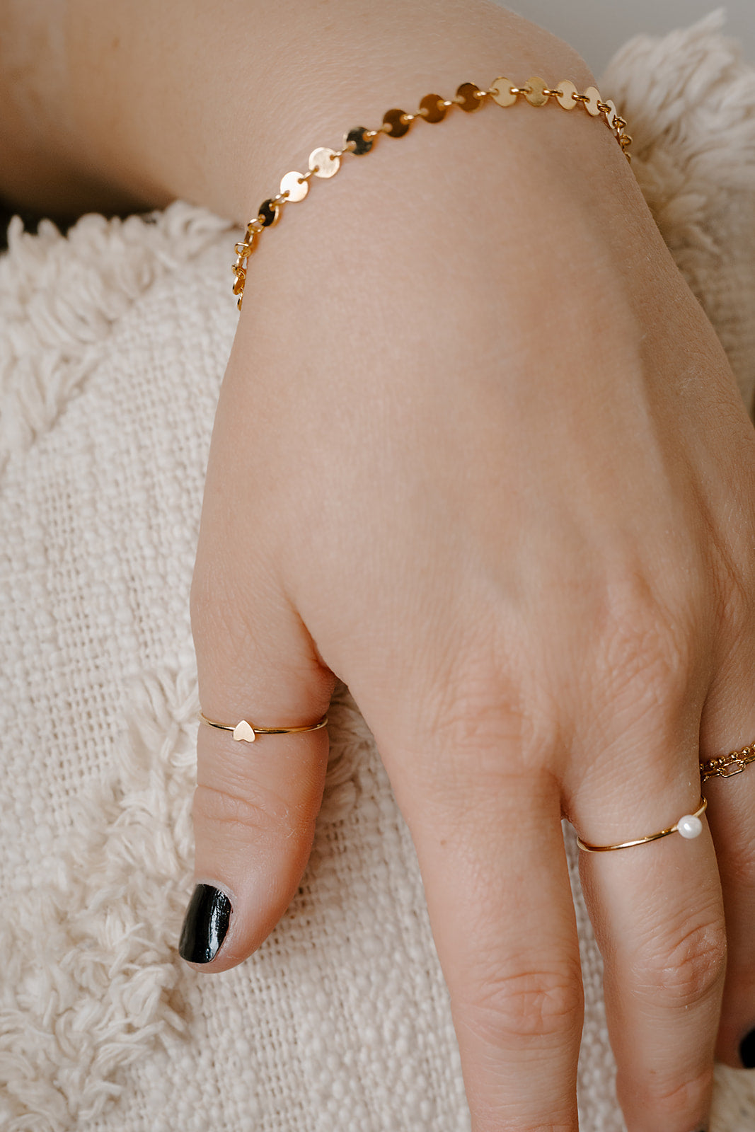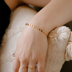 The Celine Chain Bracelet is proof that a little shimmer goes a long way. Designed with tiny sequin-style discs that catch the light (and compliments), this one’s here to make your wrist look like it has its life together—even if you don’t.