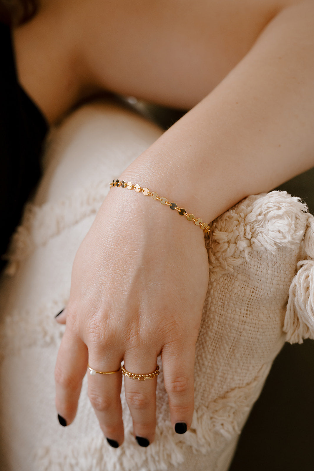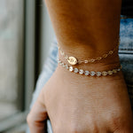 Made in 14k gold-filled, rose gold-filled or sterling silver, this dainty disc bracelet is adjustable, durable, and totally stackable. But honestly? It can handle being the star of the show, too.