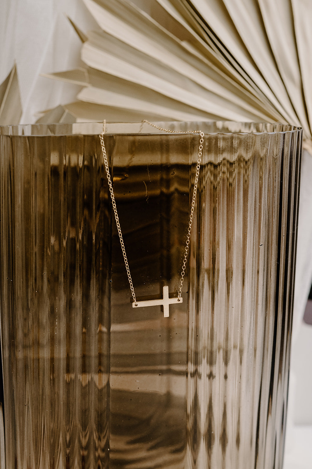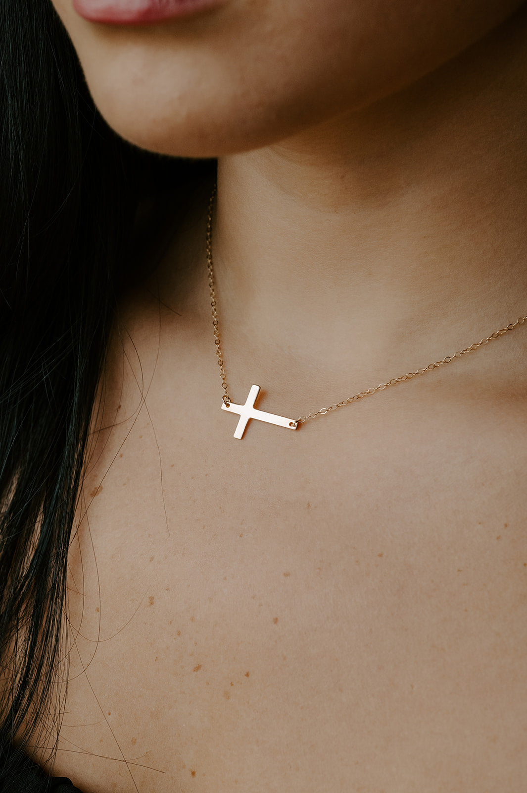 A quiet reminder to pause, reflect, and stay rooted in what matters. The Selah Cross Necklace features a sleek sideways cross on a fine, minimalist chain—modern, meaningful, and designed to move with you.