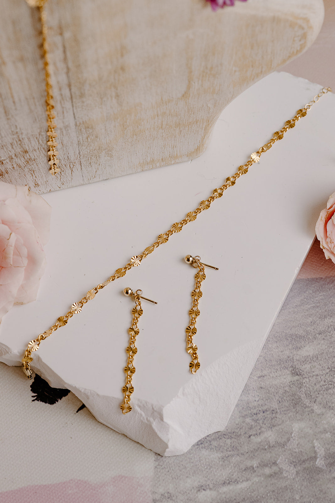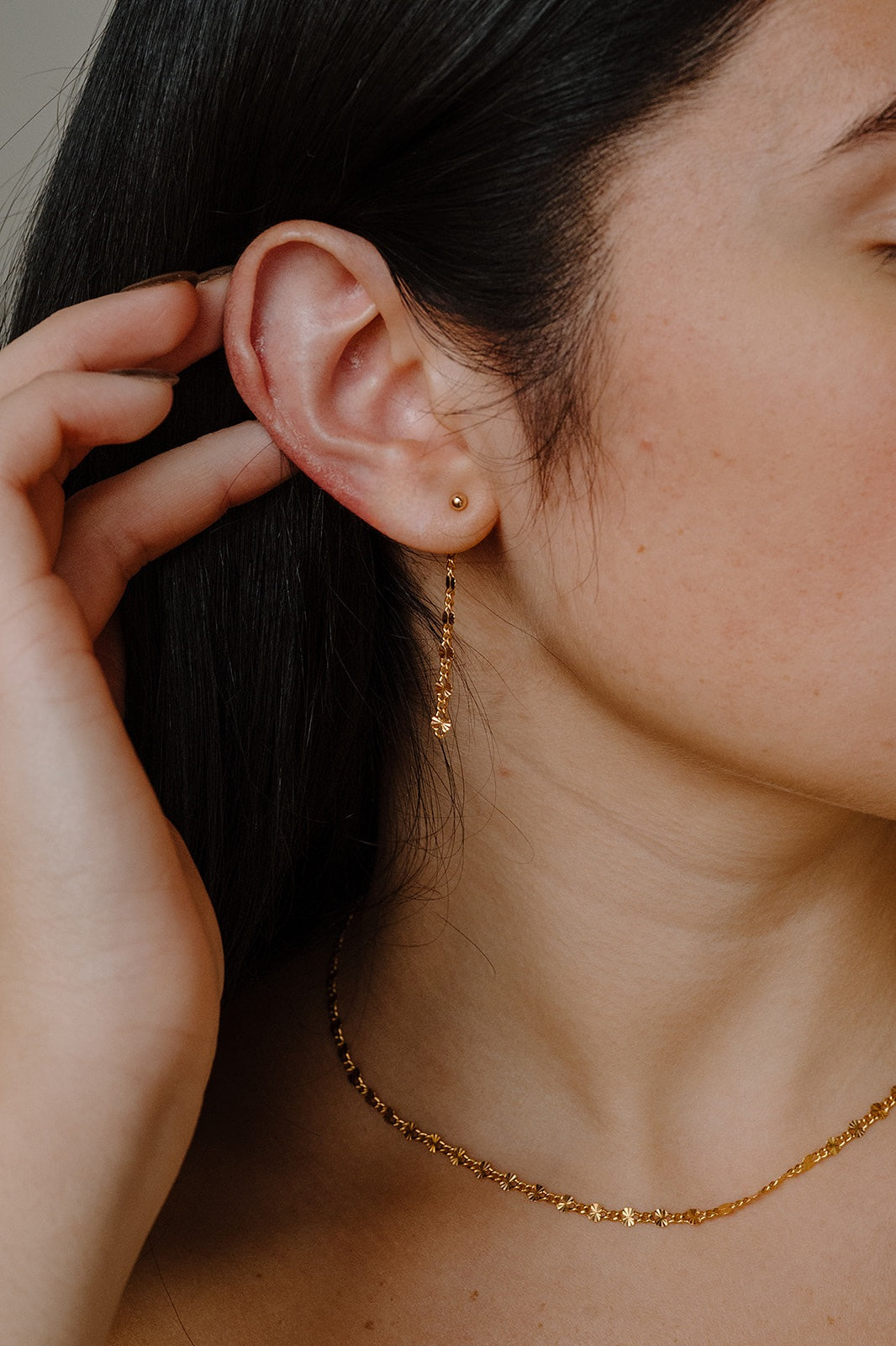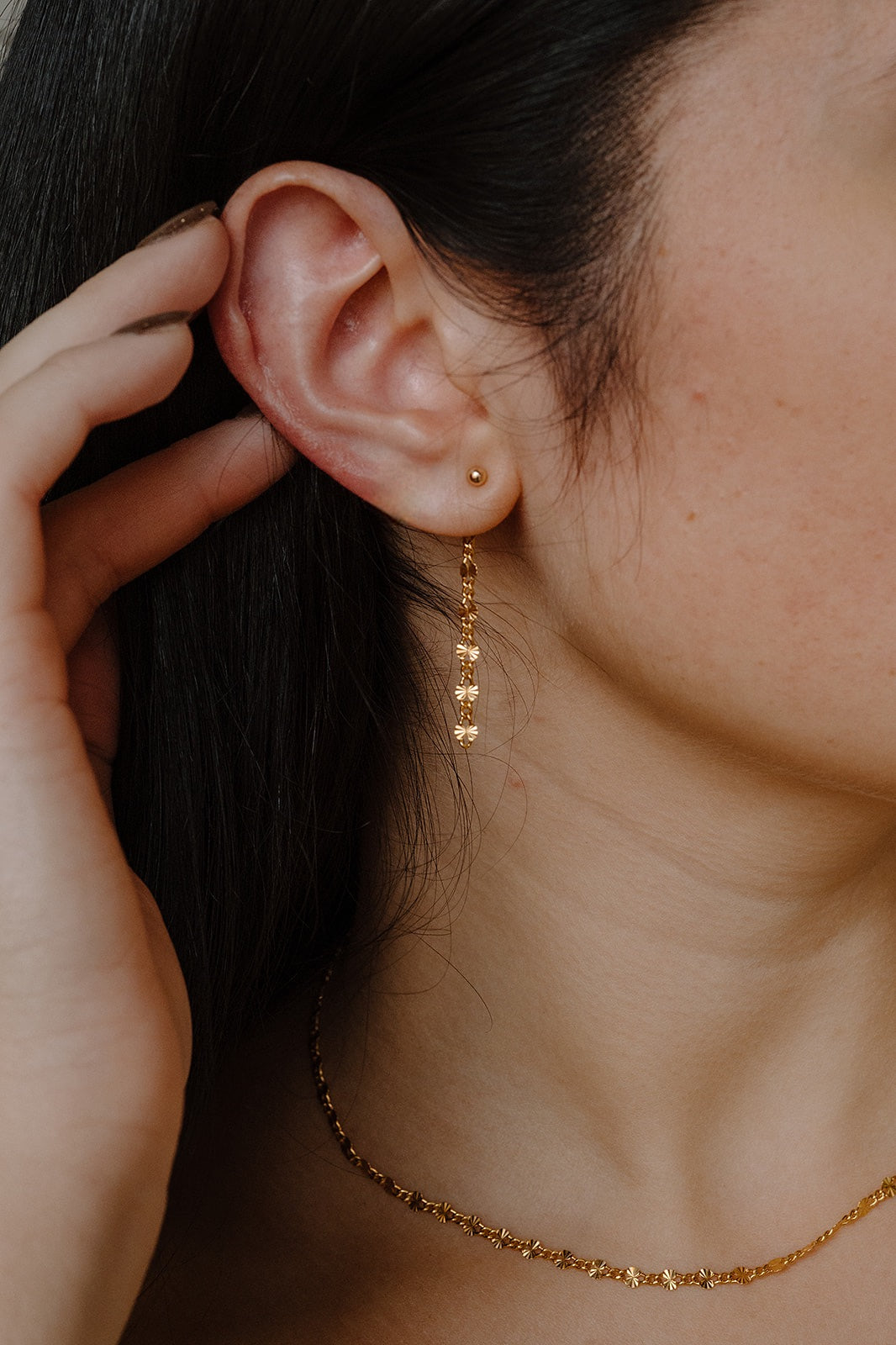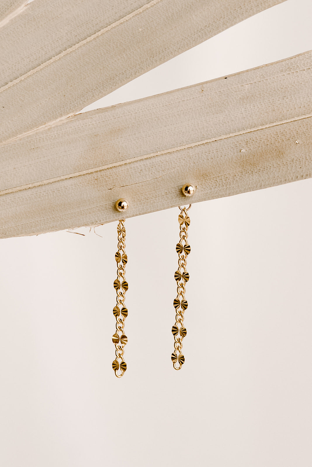Designed with bold sunburst links that catch the light from every angle, these drop-style earrings bring that signature golden-hour glow to any look. Handcrafted in 14k gold-filled or sterling silver, they’re lightweight, tarnish-resistant, and made to shine all day (and night).